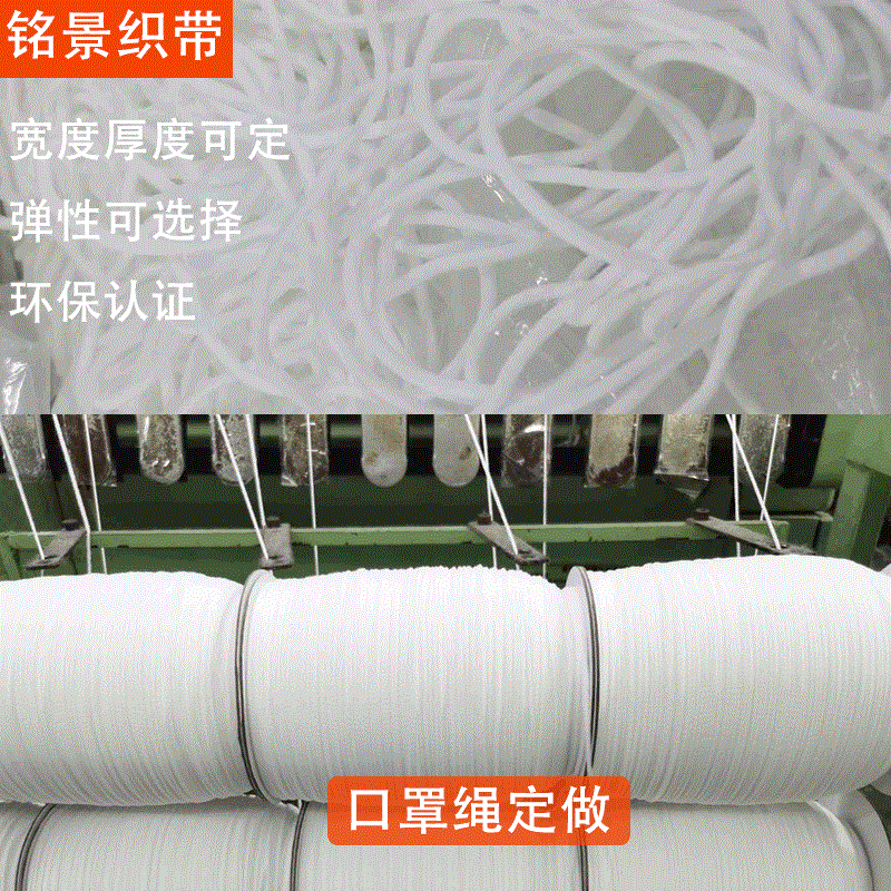 東莞市厚街銘景織帶廠,專注生產純棉織帶、滌綸織帶、再生環保織帶、口罩帶、口罩繩帶廠家定制,可免費供樣。聯系熱線:13798890241 王先生